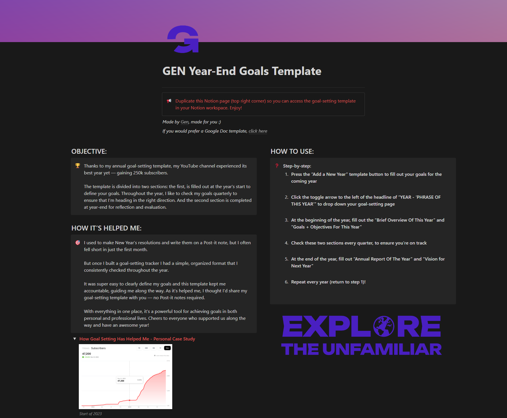 If you sign up today, you’ll get a free goal setting Notion /Google Docs template for 2024